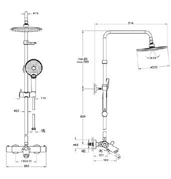 • Термостатный смеситель, верхняя лейка и ручной душ включены в комплект поставки