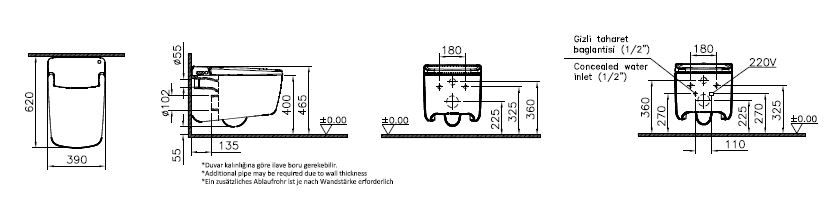 Интеллектуальный подвесной унитаз Vitra V-Care Prime, 7231B403-6216