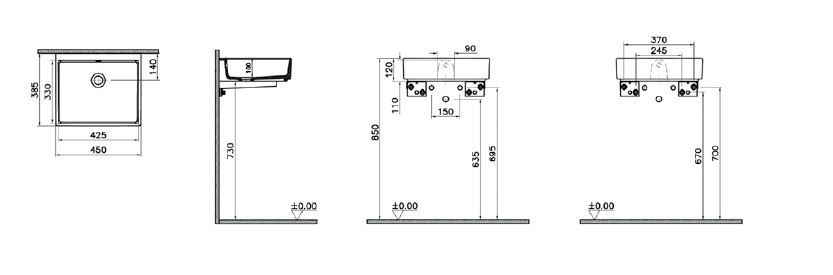 Прямоугольная раковина-чаша VitrA ArchiPlan, 45 см, цвет белый, 7403B003-0012