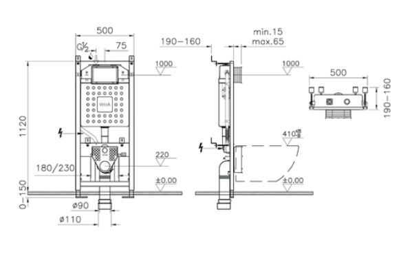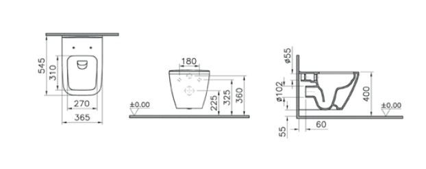 Комплект: Подвесной безободковый унитаз Vitra Integra Square, с тонким сиденьем с микролифтом, инсталяцией и панелью управления, 9856B003-7206