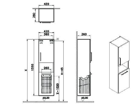 Пенал высокий, Vitra Root, 40 см, с корзиной для белья, матовый, темно-синий, правосторонний, 68012
