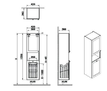 Пенал высокий, Vitra Root Classic, 40 см, с корзиной для белья, матовый темно-синий, левосторонний, 68522