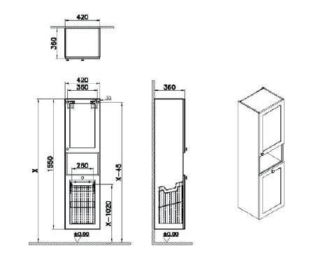 Пенал высокий, Vitra Root Classic, 40 см, с корзиной для белья, матовый темно-синий, правосторонний, 68529