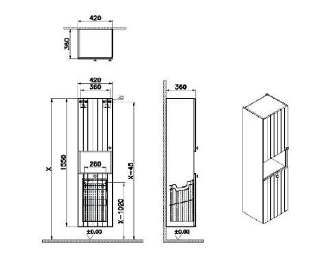 Пенал высокий, Vitra Root Groove, 40 см, с корзиной для белья, матовый серый, левосторонний, 69095
