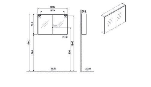 Зеркальный шкаф, Vitra Mirrors, 100 см, с LED подсветкой, 66912