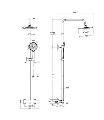 - Термостатический смеситель, верхняя лейка и ручной душ входят в комплекте поставки