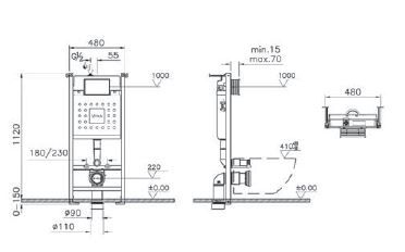 Комплект: Подвесной безободковый унитаз Vitra Integra Square, с сиденьем с микролифтом, инсталяцией и панелью управления Root Round хром, 9856B003-7207