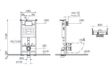 Комплект: подвесного безободкового унитаза VitrA Zentrum (с сиденьем микролифт, инсталляцией и кнопкой Root Square), хром глянцевый 9879B003-7200