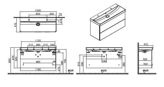 Шкаф Vitra Metropole Pure с раковиной, c 2 ящиками, с подсветкой в верхнем ящике, 120 см, цвет глянцевый белый, 67334