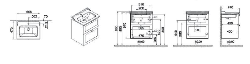 Модуль с классической раковиной, Vitra Root Classic, 60 см, 2 ящика, матовый белый, 68848