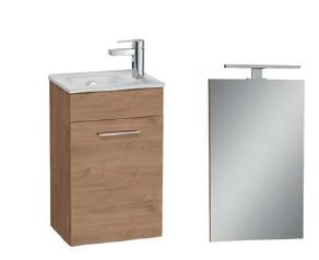 Тумба, раковина, зеркалос подсвесткой (цвет золотой дуб).