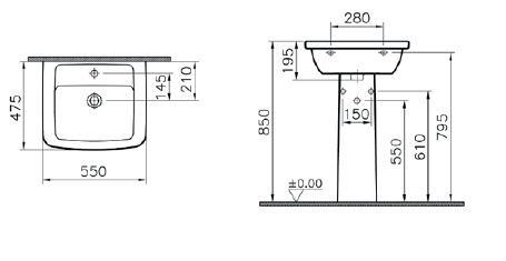 Комплект: раковина VitrA Form 300 c пьедесталом, 9602B003-7650
