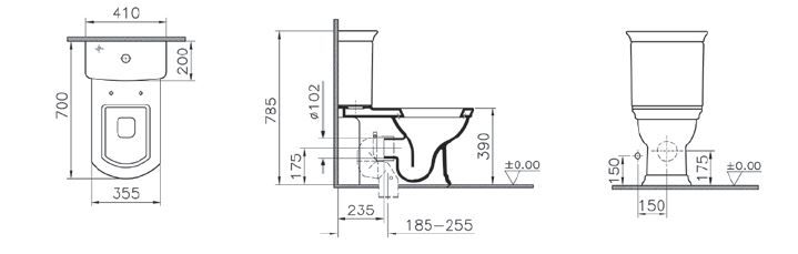 Комплект унитаза VitrA Serenada с деревянным сиденьем, с механизмом смыва Geberit, 9722B003-7204