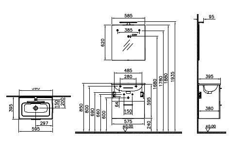Комплект мебели Vitra Mia, 60 см, с ящиками, 75021.