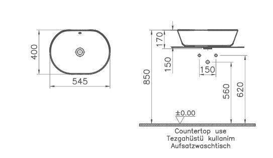 Овальная раковина-чаша VitrA Geo, 60 см, цвет белый, 7427B003-0012