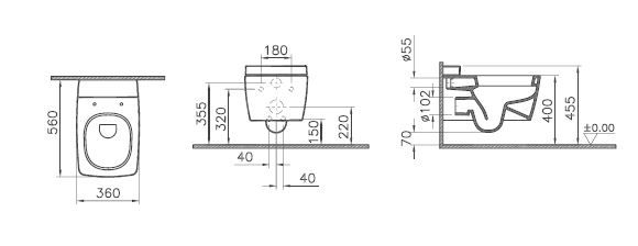 Подвесной унитаз 56 см с функциями VitrAflush и VitrAfresh безободковый, с емкостью для чистящей жидкости, 7672B003-1686