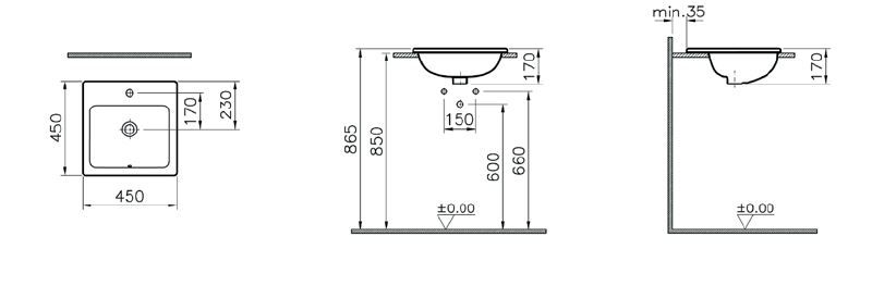 Раковина накладная VitrA S20, 45 см, 5463B003-0001