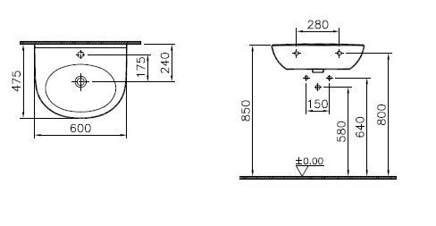 Раковина VitrA Zentrum, 60 см, 5786B003-0001