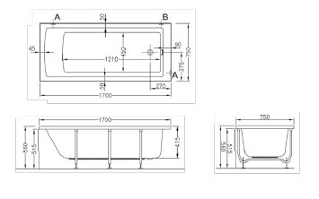 Ванна прямоугольная Neon 170X75 см, 52280001000
